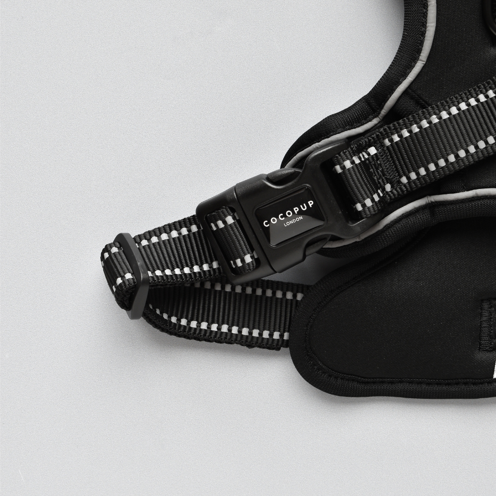 - Sécurité renforcée : Equipé de trois points d'entrée et d'une fonction de verrouillage de sécurité, ce harnais garantit une tenue fiable pour les chiens les plus énergiques.